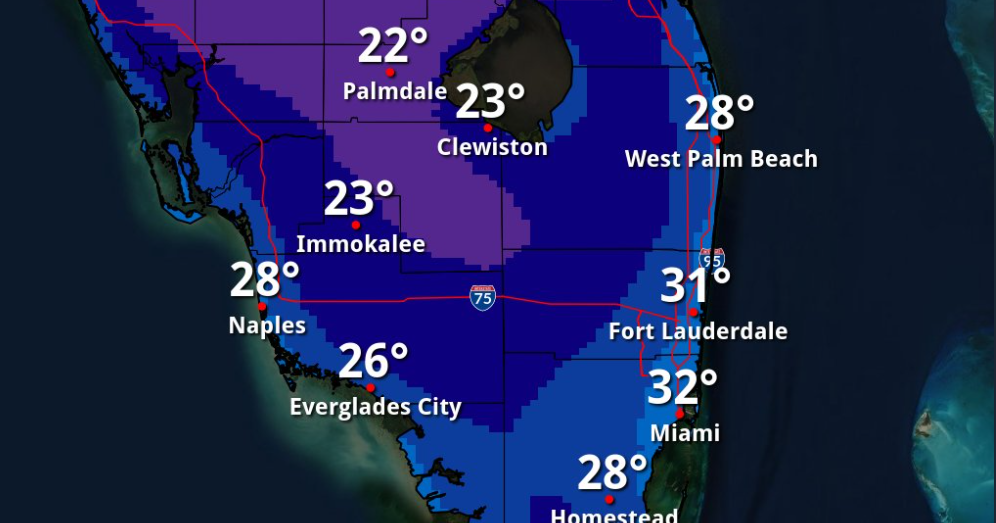 Miami Beach Weather Map Florida weather forecasts: chilly Miami, near freeze Panhandle : “To check. When you’re in Miami, you should check the beach,” Lemanczyk said. CLICK HERE to view Local 10′s live cameras across South Florida. The stalled-out weather system gave the area . A high rip current risk is in effect for coastal Broward and Palm Beach counties through Saturday morning. A surfer rides a wave during bad weather on Wednesday, Dec. 13, 2023, in South Miami Beach. .
